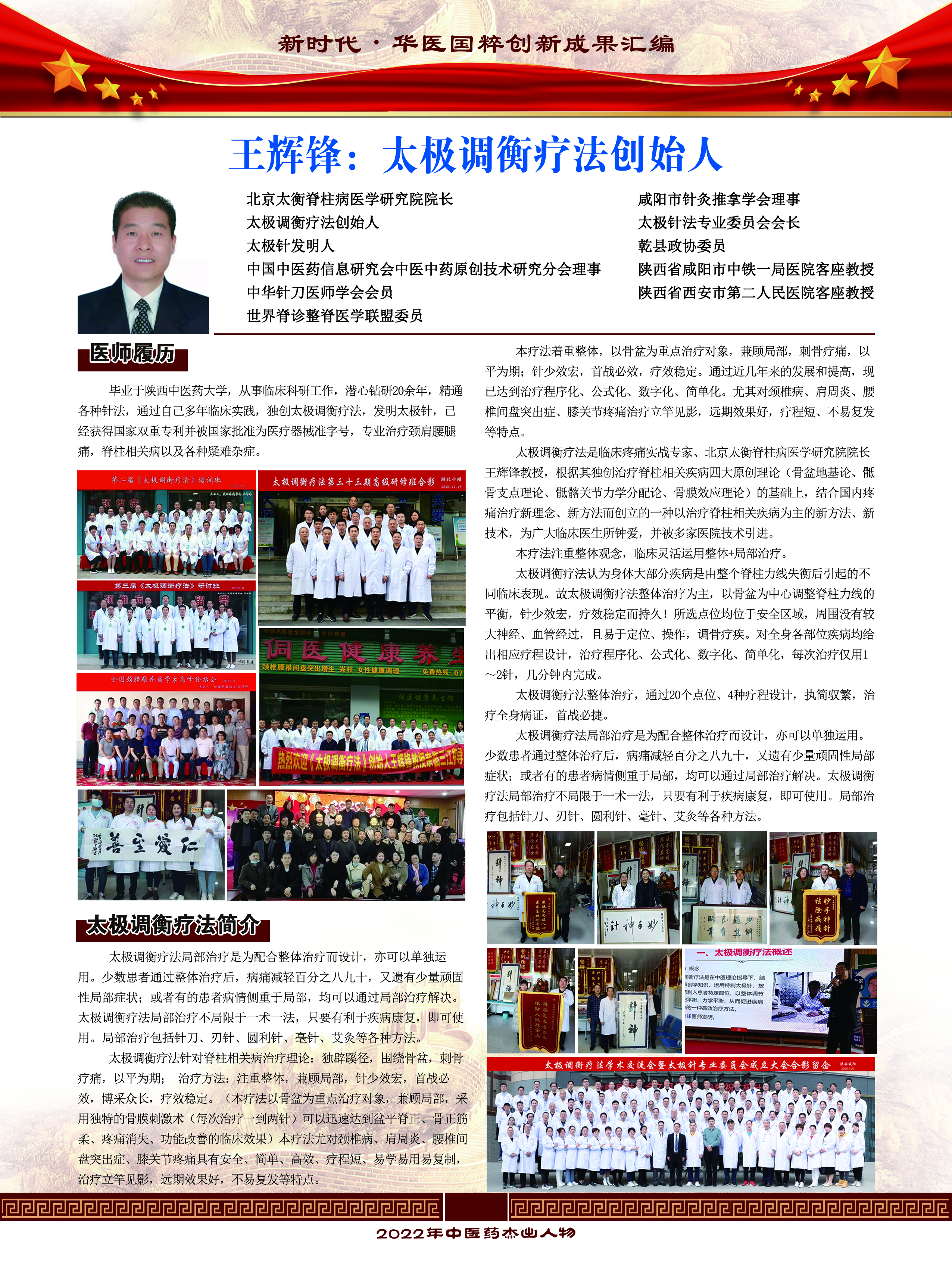 太极调衡疗法是临床疼痛实战专家、北京太衡脊柱病医学研究院王辉锋院长独创,从事临床科研工作,潜心钻研20余年,精通各种针法,通过自己多年临床实践,独创太极调衡疗法,发明太极针,已经获得国家双重专利并被国家批准为二类医疗器械准字号,专业治疗颈肩腰腿痛,脊柱相关病以及各种疑难杂症